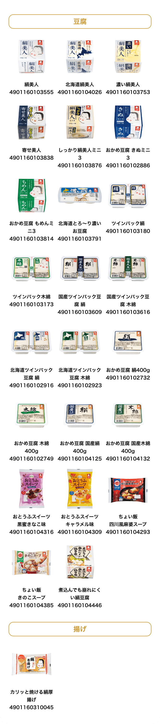 ※読み取った商品はすべて「おかめ納豆」もしくは「おかめ豆腐・揚げ」と表示されます。