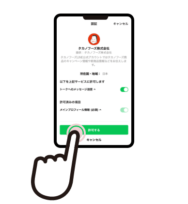 LINEの認証画面が表示されましたら「許可する」をタップします。