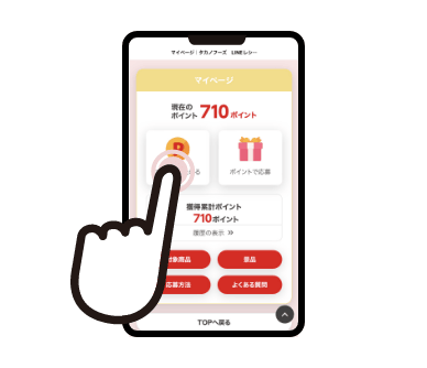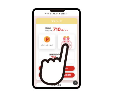マイページより「ポイントで応募」ボタンをタップし、応募したい景品を選択した上でご応募ください。